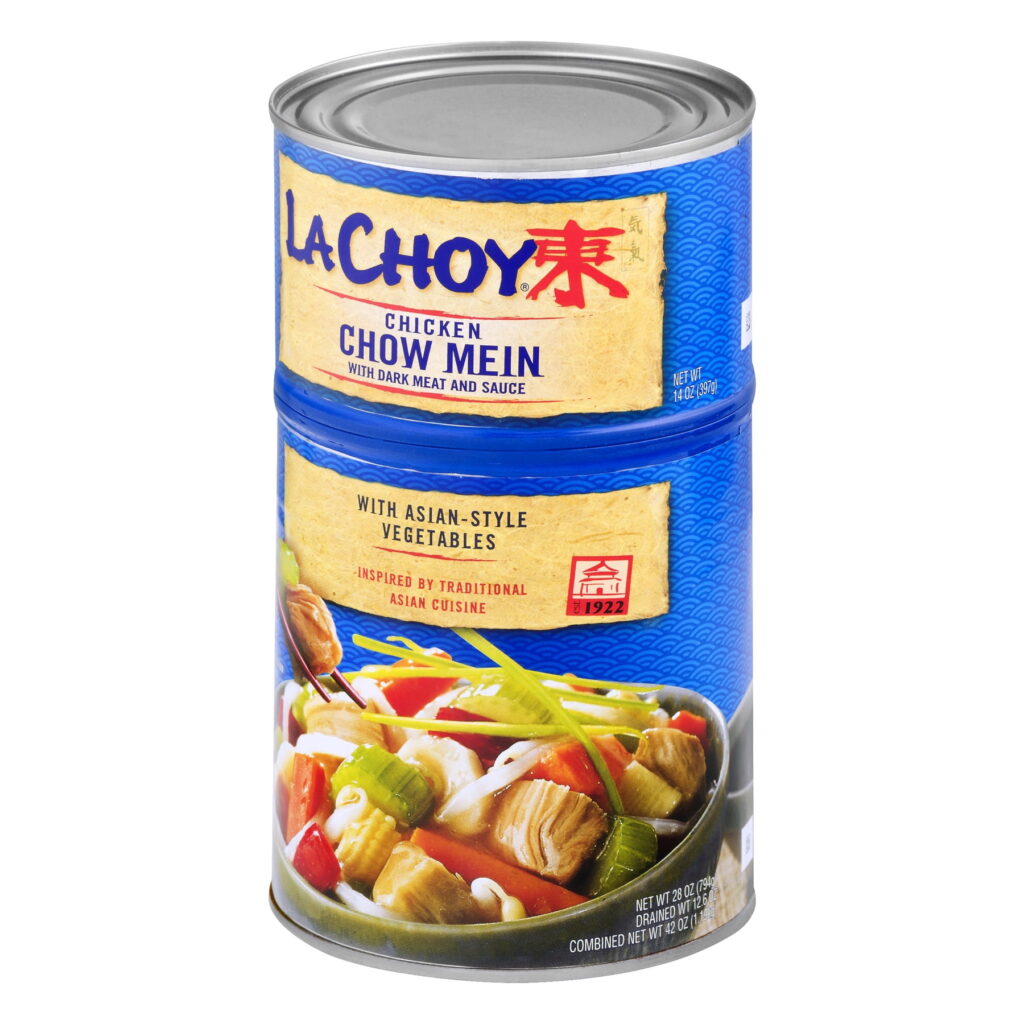 She kept a can of La Choy chicken chow mein – the two step can with the chow mein in one can and the dry noodles in a second can taped together.